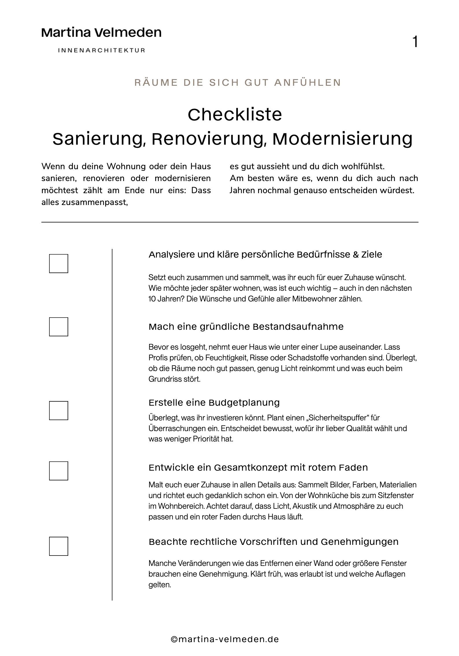 11. Checkliste für stressfreies Renovieren und Sanieren zum Download